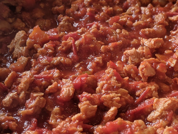 The first ragù version was based on seitan. I was determined to prepare that one, but a week before cooking the recipe, a long-time Italian vegan recommended me to do it with texturized soy (TSP) instead. She said that most vegan versions were prepared with soy. One of the reasons would be the bad rap that seitan has gotten during the past years. People are looking to avoid more and more any form of gluten when possible. It’s true that some people who also avoid soy, but now there are better sources (non-GMO and even organic) available.