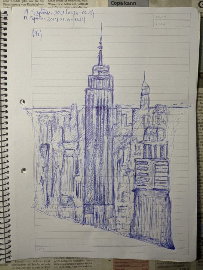 On Day 79 I did a freehand drawing of Shakira, tracing the borders of a picture from the computer screen. I know: it sounds terrible, but I learned it in my Kuli Kunst book π. The idea was to get just the contours of a photo right. The rest should be easier. It was really fun! Now I feel like I have a powerful tool under my belt. Days 80 to 83 were just buildings. I copied these from the book, but I might have found fresh examples online. I think that might have been better.