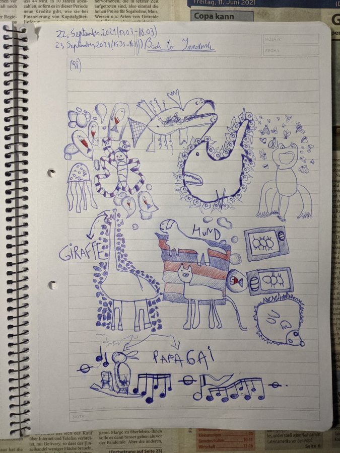 In the second half of the week (when trying the ‘intervention’ of kids’ drawings) I was a bit skeptical about that. I thought it didn’t make much sense to be drawing like that, considering I’m not a kid anymore. Why should we do it? Well, I guess that also could be helpful to limit perfectionist tendencies. Kids just draw. They don’t ask themselves if the drawing looks good, if it’s well-balanced, and if they’re using good technique. They just draw! That’s something we can learn from π.