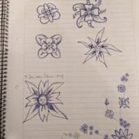This week I completed the characters based on objects (Days 9 and 10). On Days 11, 12, and 12 I worked on flowers and ornaments. Creating symmetric figures is always a challenge, but these were fairly simple. I noticed what a great difference can make, the strength of the pen stroke. It looks totally different. A slightly stronger stroke creates a whole different outlook.