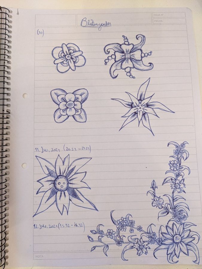 Below you can find the daily drawings. Each day, I’m practicing for an hour. Sometimes, I fill one or two pages. But there are days when I work on more detailed stuff, and maybe it’s just half a page 🙃. As soon as I reach the one-hour mark, I put the pen down and take the photo of the day. Click on the thumbs to see the larger pictures: