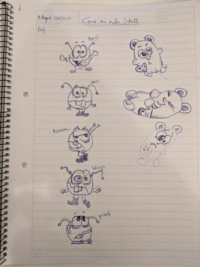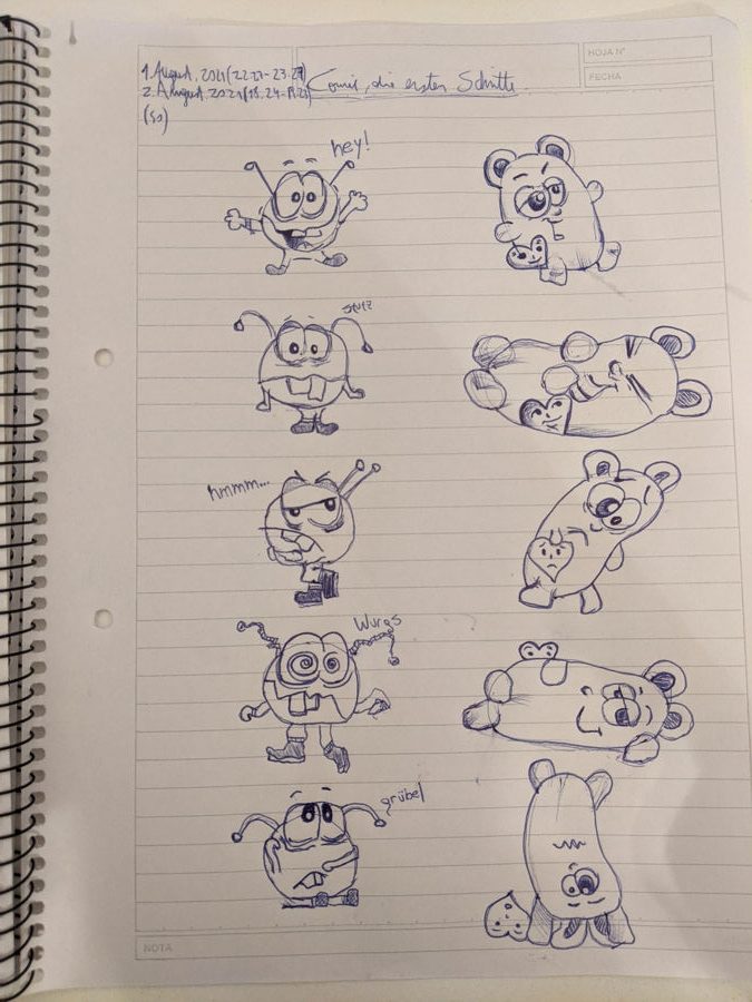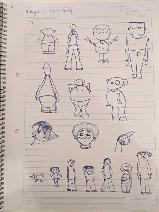 This week I got started with comic characters, doodles, and other fun figures. The idea was to create something out of very simple shapes, like circles. The more I work on this project, the more I realize that the real difficulty here lies in coming up with original figures to draw on your own. I realized that it is not so hard to copy or imitate something made by someone else. Even drawing something based on a photograph. It’s not that I mastered that skill. Far from that! It’s something else.