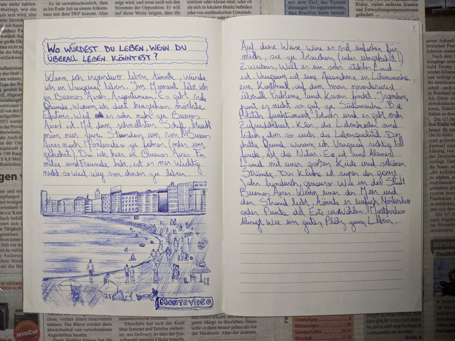 In Days 63 and 64 I was supposed to use a piece of printed paper (such as a letter). Unfortunately, the ones I had at home didn’t seem suitable for this kind of work. That’s why I decided to use a filled-out exercise sheet I had completed some time ago. Anyway, it was a printed sheet of paper! The idea of that work was to encourage the students to draw on any kind of paper. We don’t need to have a blank canvas in order to start doing something on it.