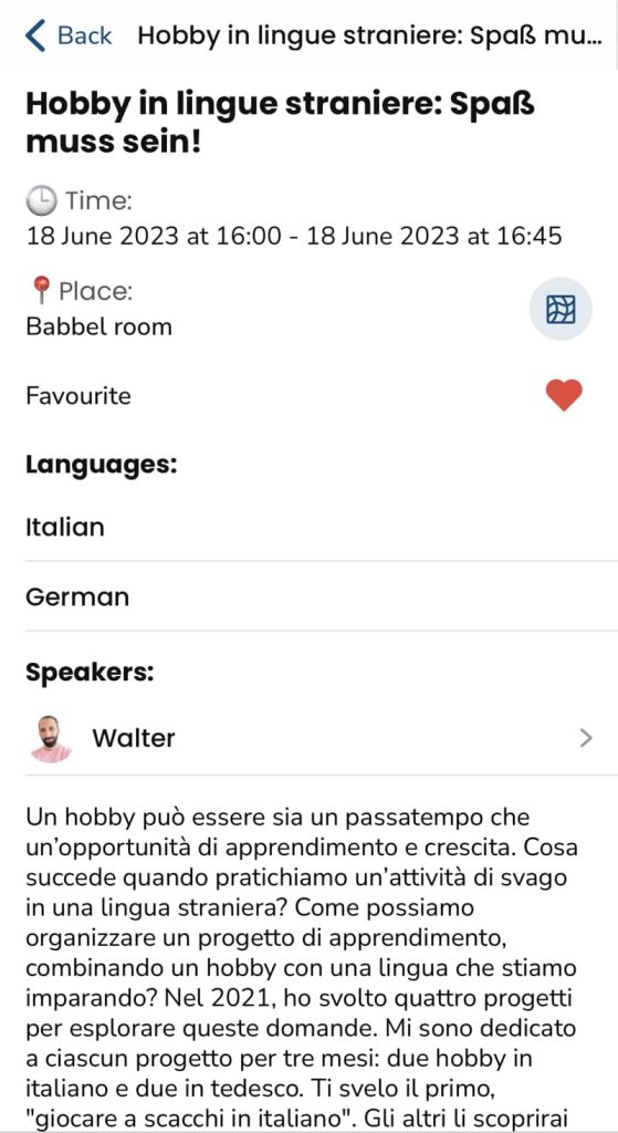Here are the slides and a short video. The full presentation will be available later on the Polyglot Gathering’s official YouTube channel. Stay tuned for my talk, titled ‘Hobby in lingue straniere: Spaß muss sein!’.