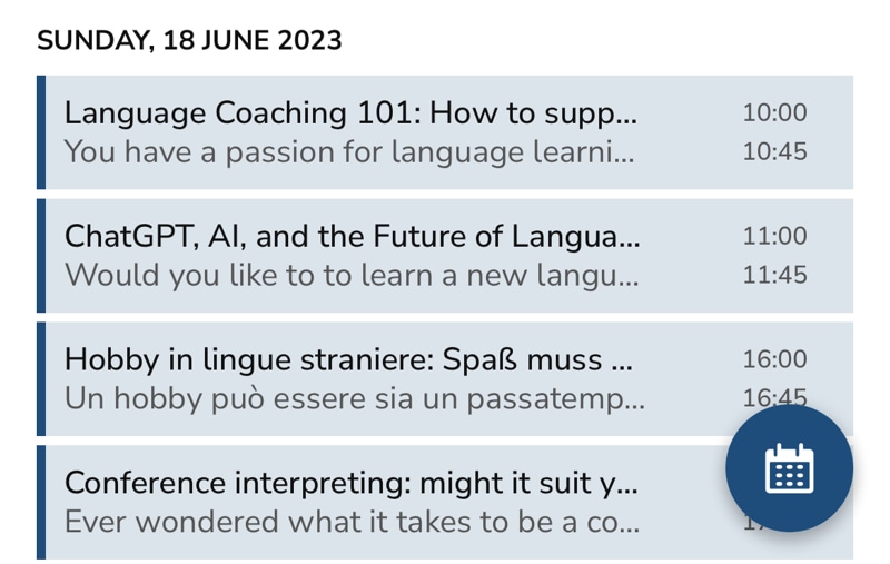 I took part in talks and activities on the future of language learning, language coaching, typing in multiple alphabets, volunteering interpreting, and professional interpreting. These were the topics that picked my interest, although the range of subjects was even larger. Typically, the more intimate settings of smaller rooms allowed for greater interaction and involvement compared to the larger venues.
